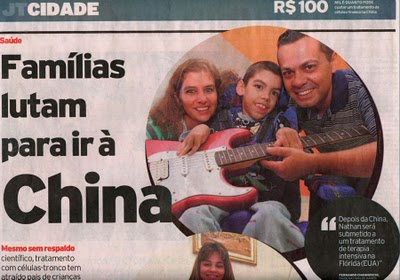 Movidos pela esperança de conseguir tratamento com células-tronco na China, pais de crianças com doenças incuráveis, como paralisia cerebral, estão fazendo uma maratona para arrecadar dinheiro. Além de criar sites divulgando a mobilização, as famílias fazem rifas, vendem camisetas, leiloam objetos doados por artistas e jogadores de futebol, fazem empréstimos e contam com a solidariedade de amigos e desconhecidos.